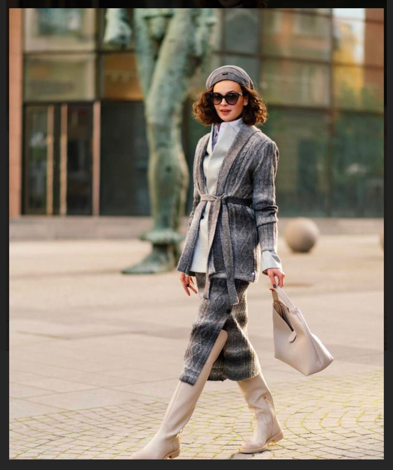 こちらは、ローブデザインのミディアム丈ニットカーディガンに