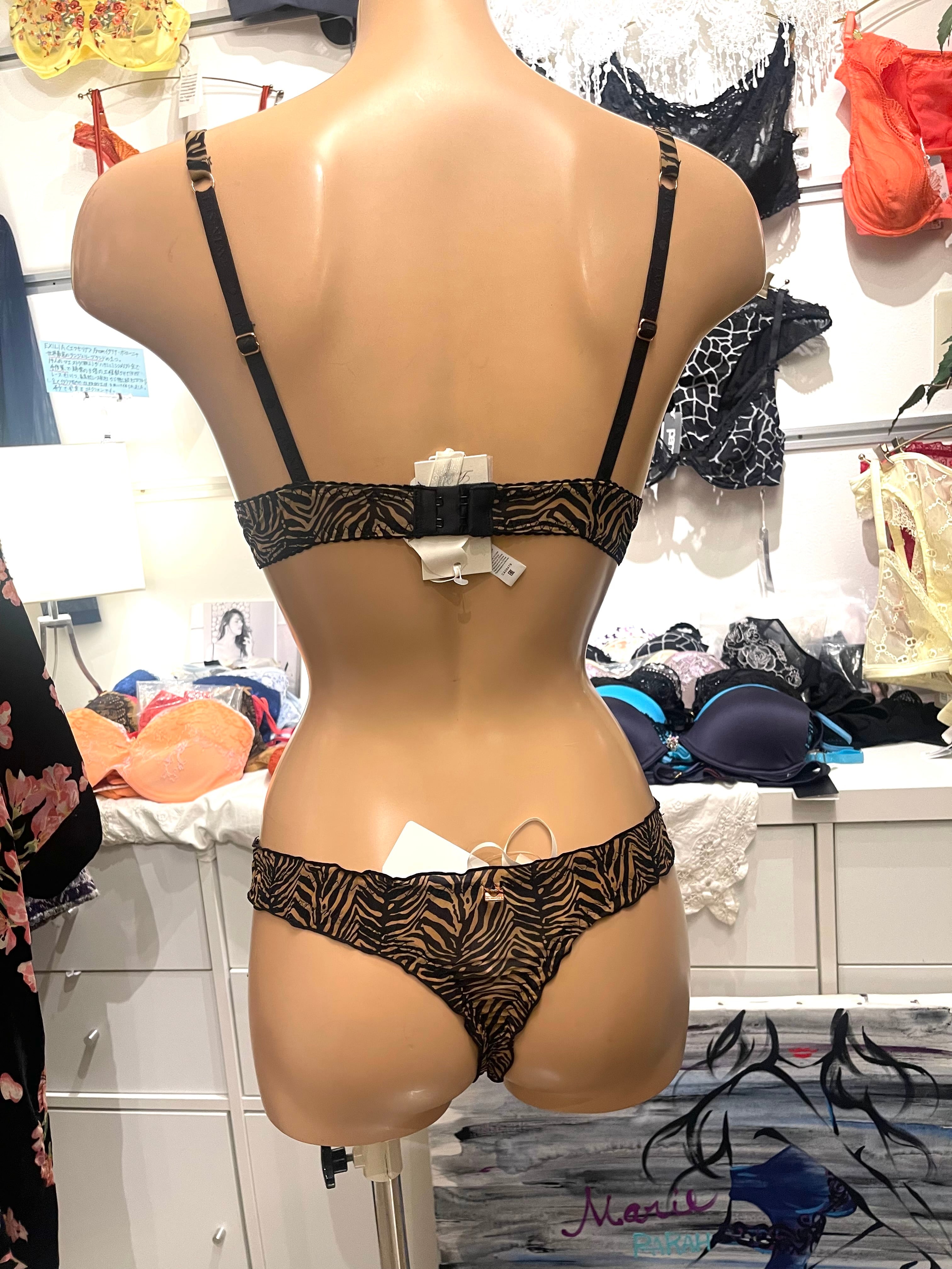 • アイラッシュレースの繊細さ: カップ上部に施された繊細なブラックのアイラッシュレースが、アニマル柄の力強さにソフトでロマンティックな印象を加えています。