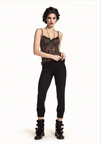 このキャミソールの「野生の強さ」と「レースの繊細さ」に呼応する、